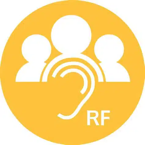 The system uses technology called “RF Assistive Listening.” An FM radio transmitter sends the audio (spoken word only) of the service to a small radio that the listener brings to church.
